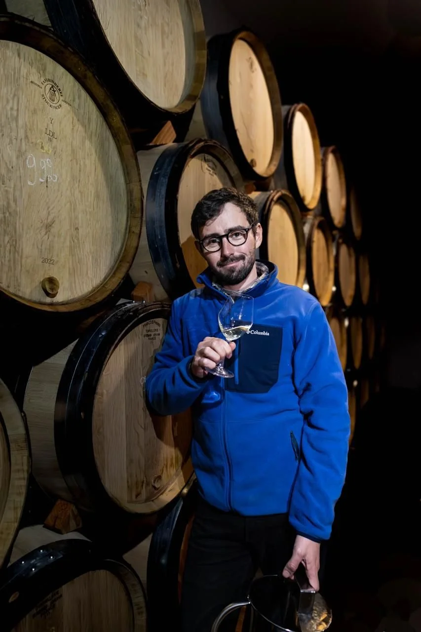 Seine Ausbildung führte ihn nach Beaune, Dijon und Montpellier, ergänzt durch praktische Erfahrungen bei namhaften Betrieben im Burgund und im Bordelais. Dieses Fundament merkt man den Weinen an: Im Keller arbeitet er mit Spontangärung, langen Hefelagerzeiten und minimalem Schwefeleinsatz. Der Ausbau erfolgt je nach Lage in Stahl, Holz oder Beton, wobei Holz sehr bewusst und zurückhaltend eingesetzt wird.